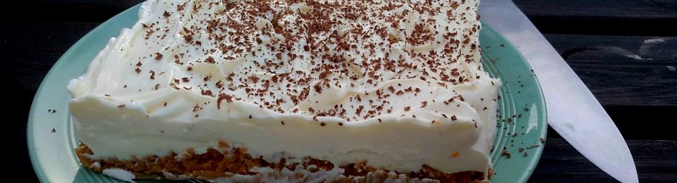 Carefully push out the base of the cake tin and place the cheesecake on a board. If you are lucky you may be able to remove the cheesecake itself from the base of the tin but often I don’t risk it! Decorate the top of the cheesecake with a little grated dark chocolate before cutting into slices.