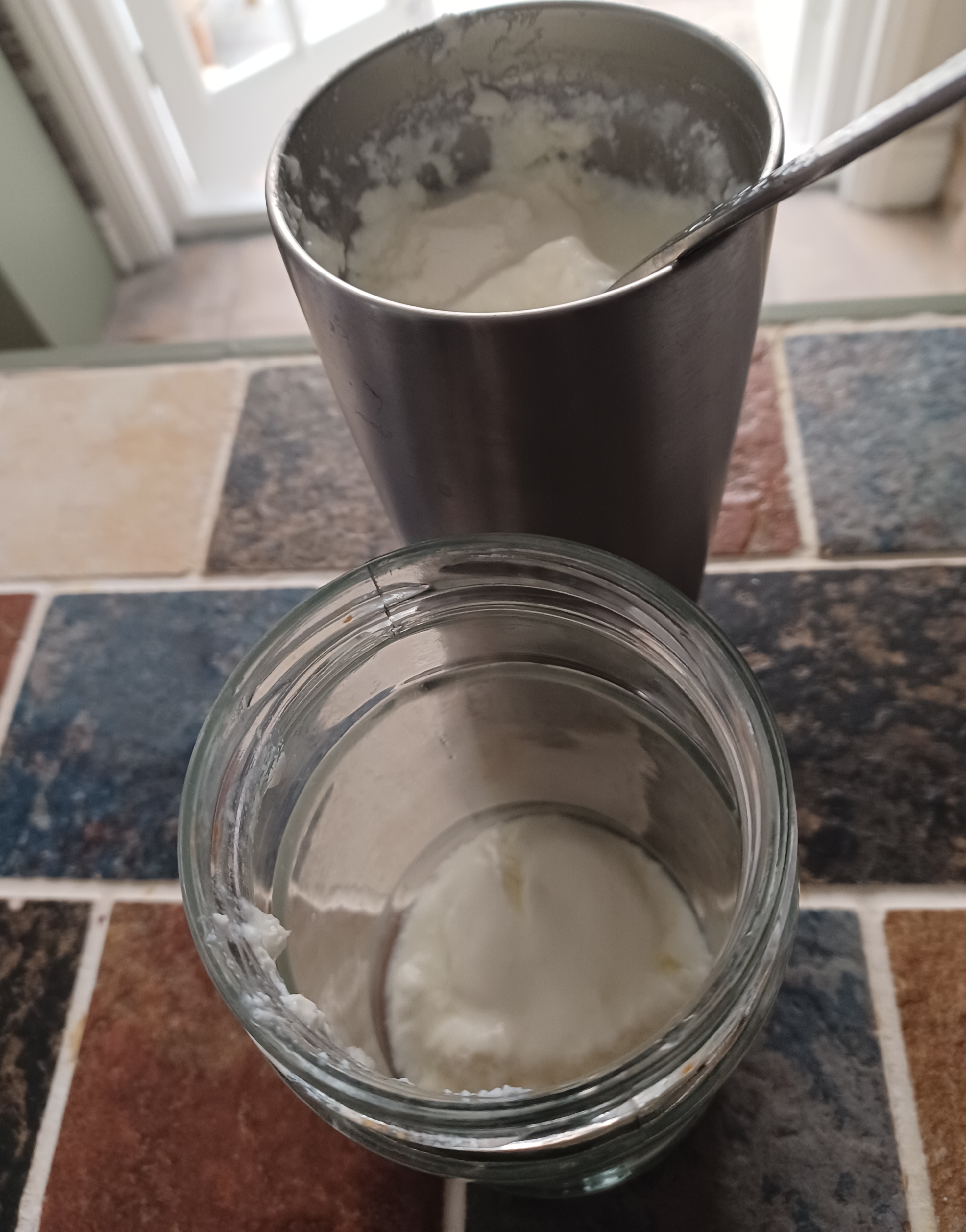 My recipe below is for 500 ml of live natural yoghurt because I only had a 500 ml capacity insulated cup that I could find right away! We had a new kitchen recently which we are still re-populating and I cannot remember where I put my Easi-Yo flask!